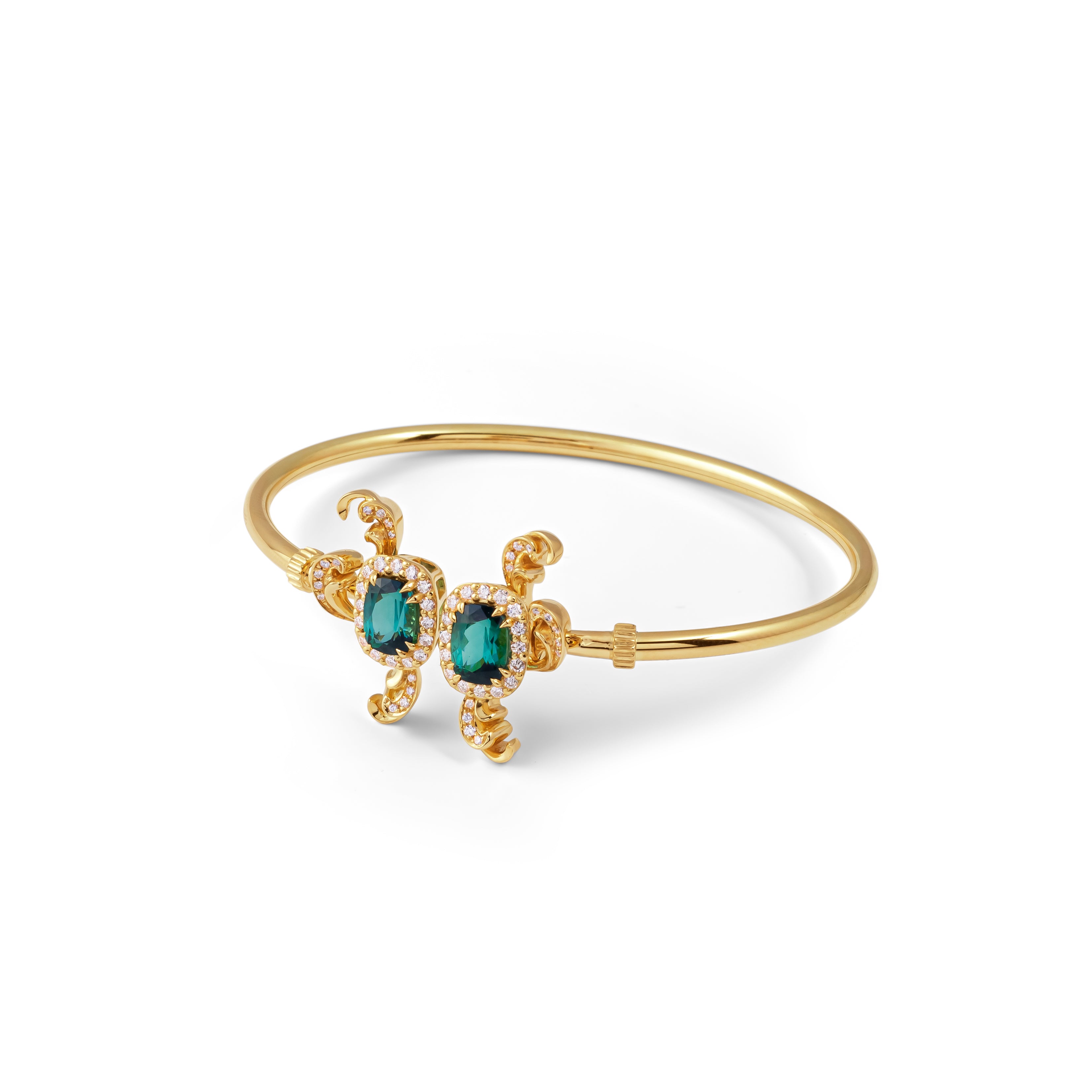 18kt yellow gold bracelet with 2 cushion-cut Blue-Green Tourmalines for a total of 1.62 ct and 58 diamonds (G/VS1) for a total of 0.40 ct.