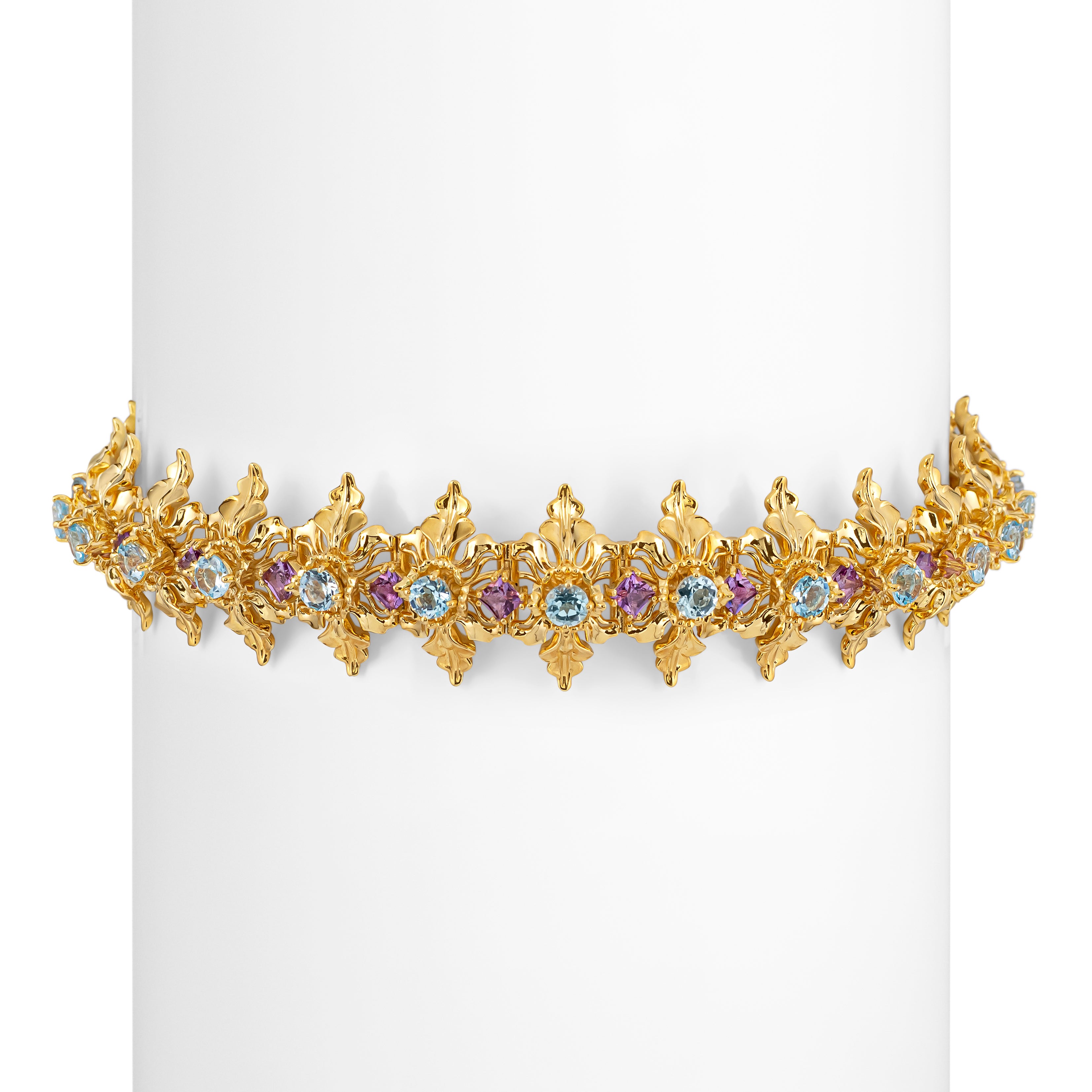 Collana in argento 925 placcata oro 18kt. 23 Ametiste taglio quadrato ( totale 7.13 ct) e 22 Topazi azzurri taglio tondo (totale 14.30 ct).